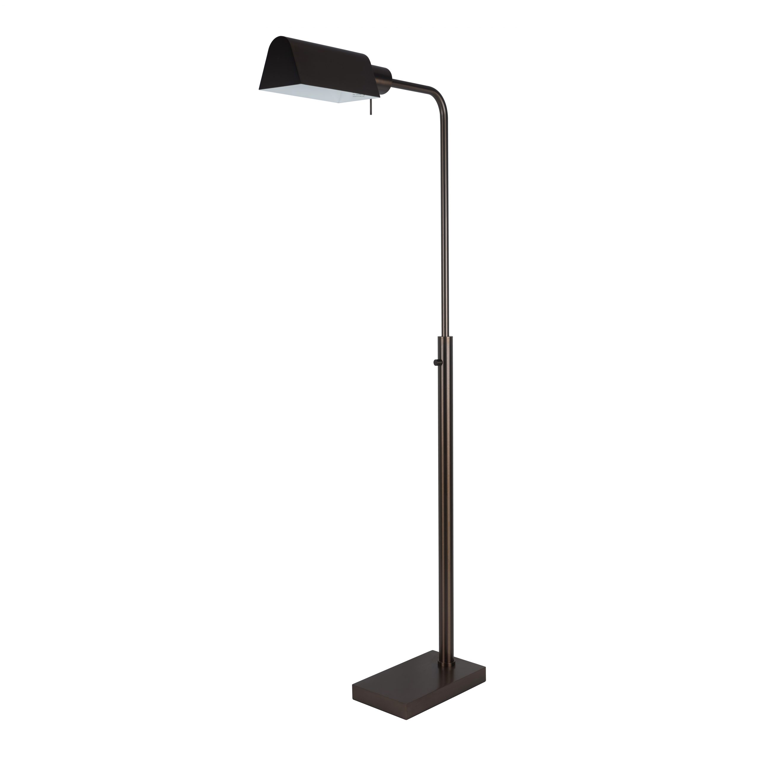 This floor lamp has a brushed dark bronze and white finish with the metal.